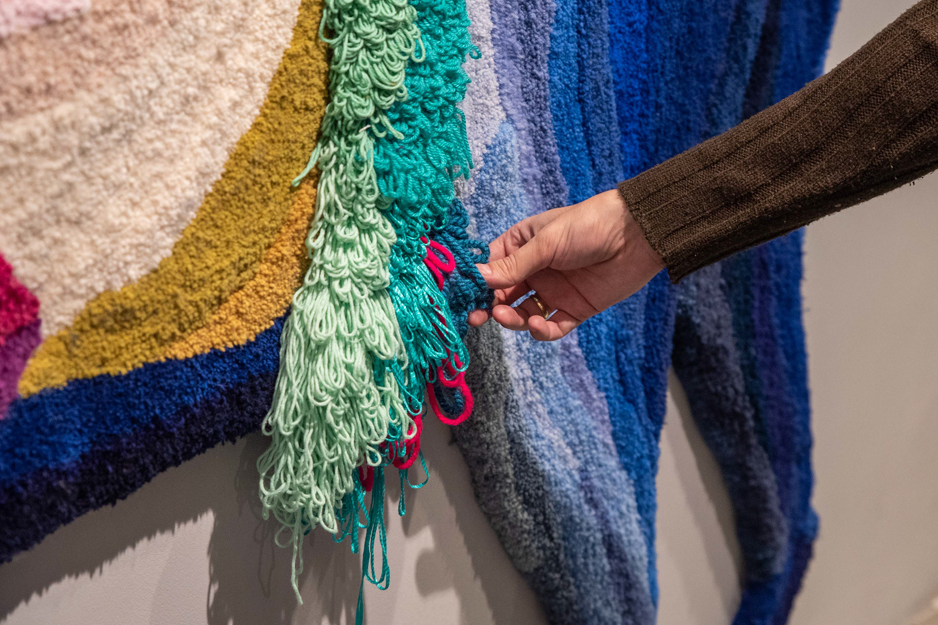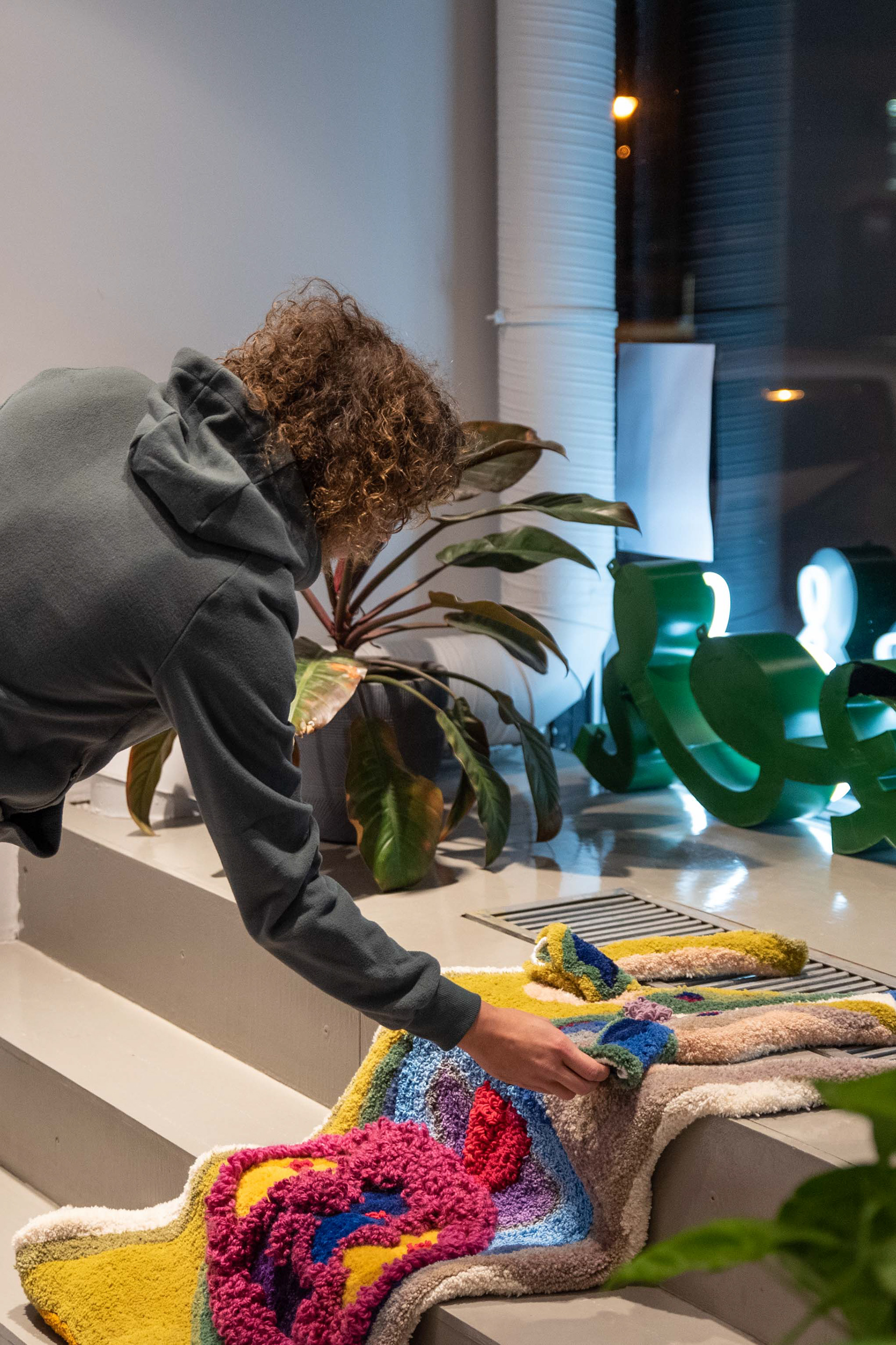 hand tufting, punching, mixed wool and acrylic secondhand yarns, 160×90cm, 2023.