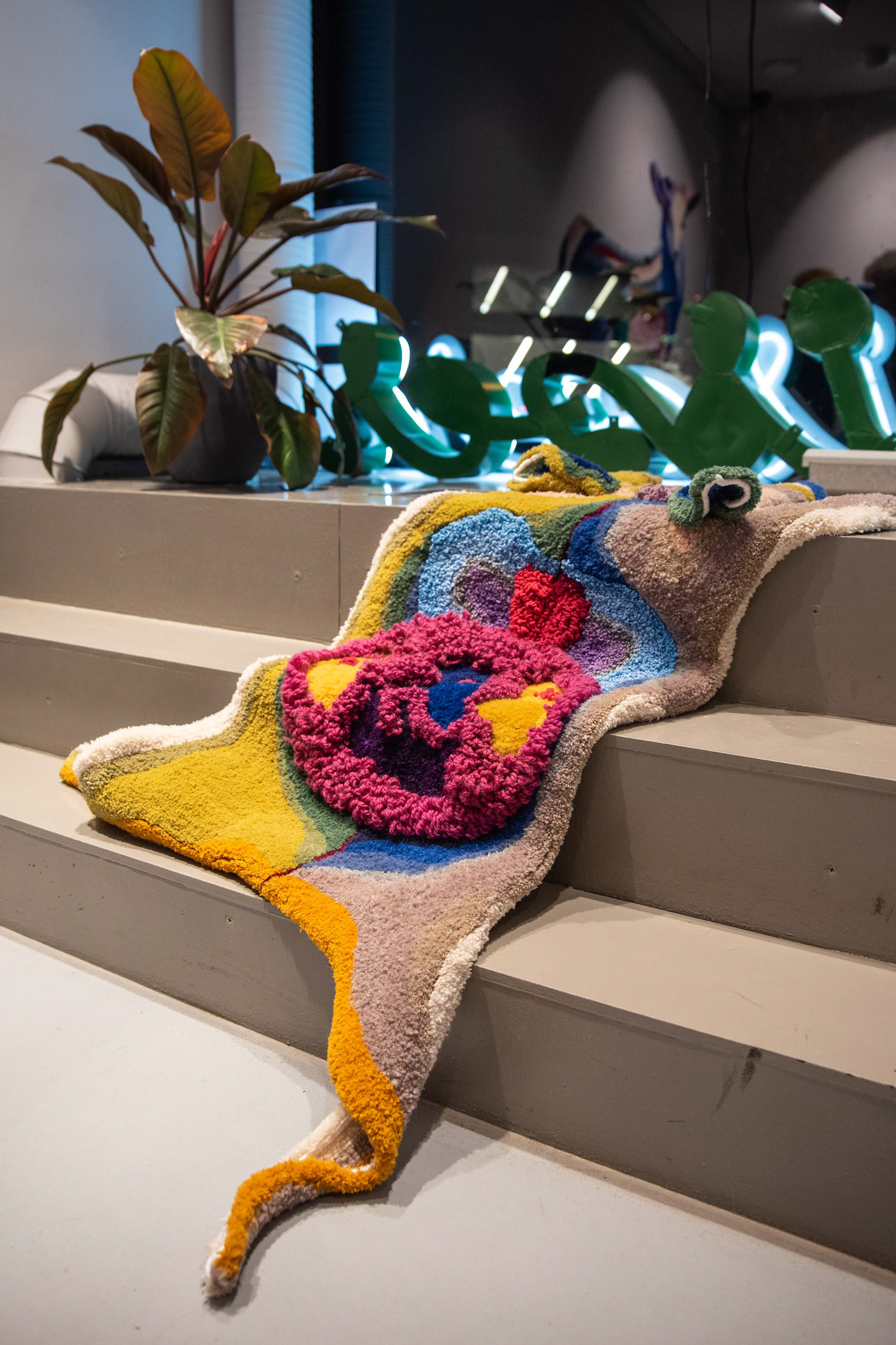 (hand tufting, punching, mixed wool and acrylic secondhand yarns, 220×240 cm, 2023.)