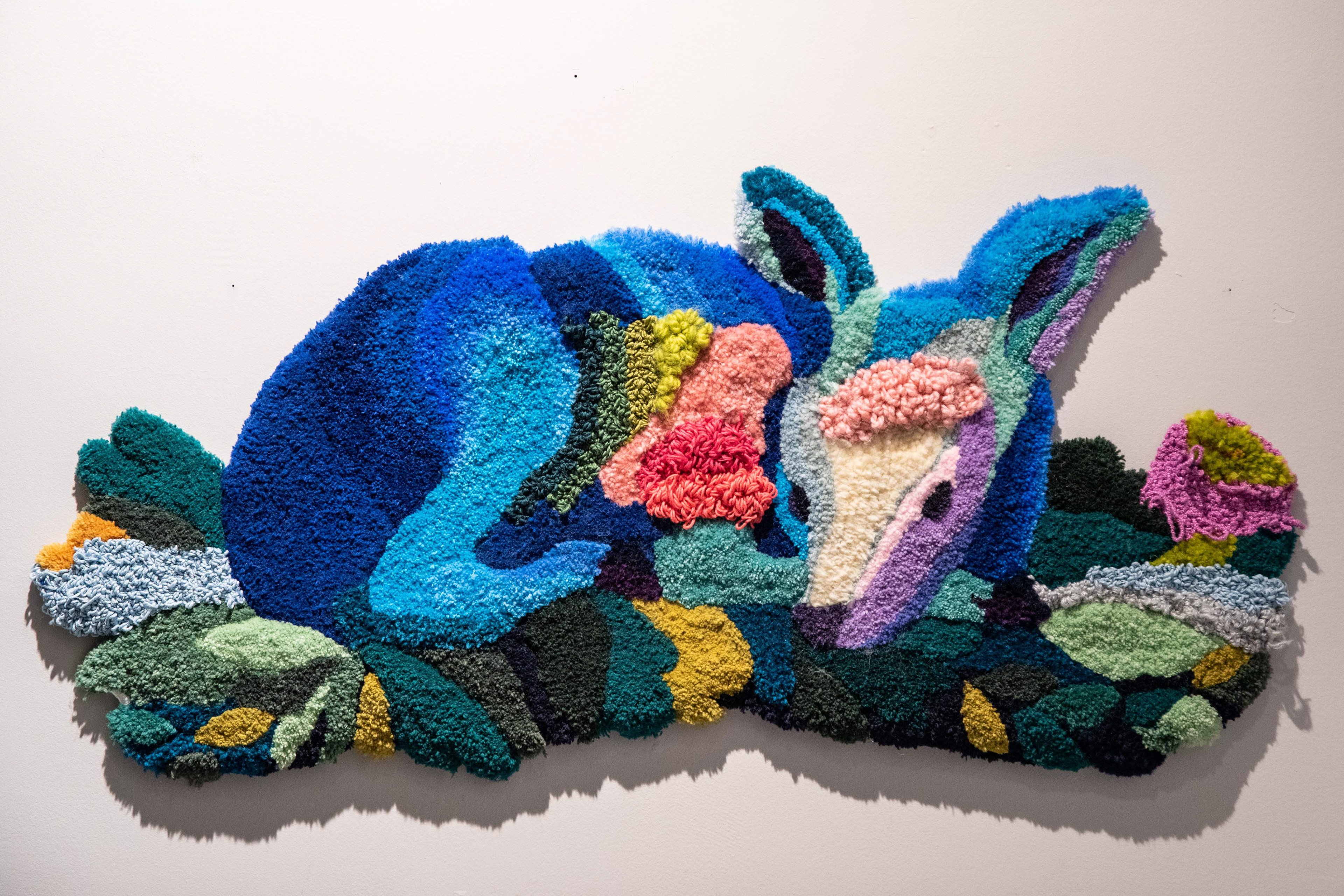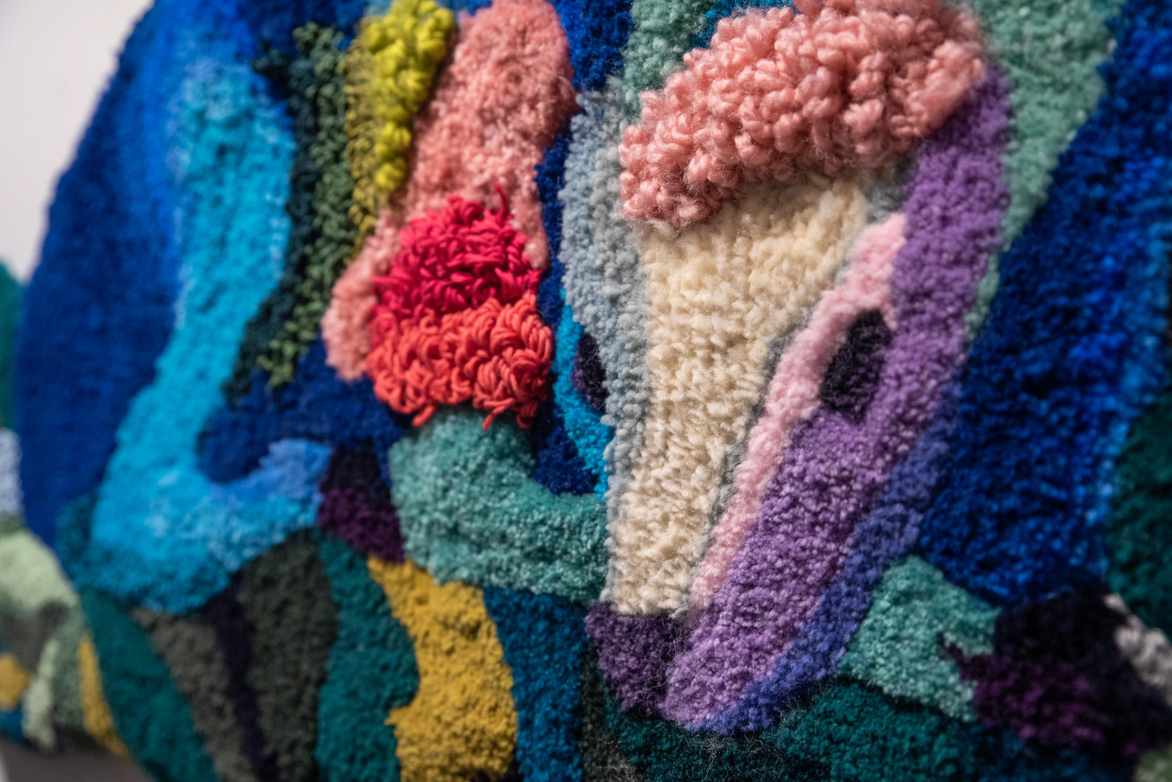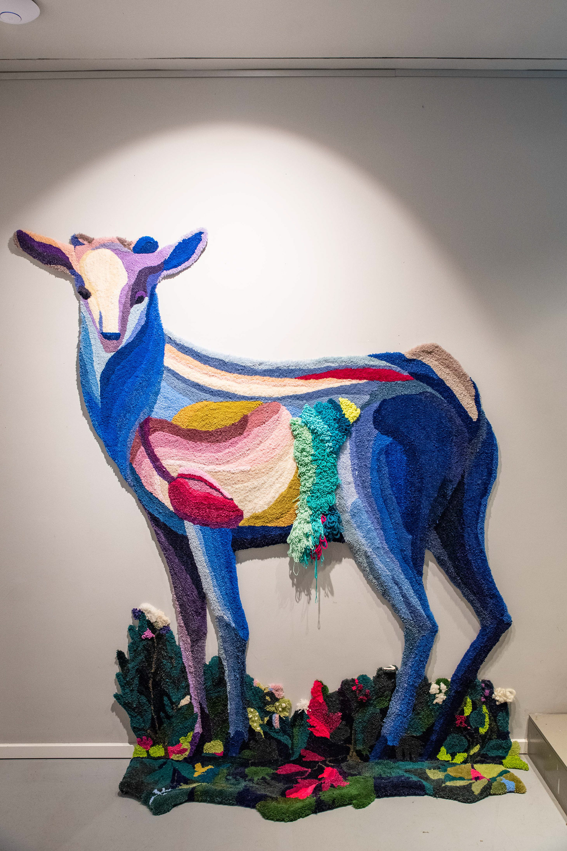 The exhibition critically examines the phenomenon of urban wildlife with a sensitizing purpose. Réka Vidra brings the topic closer to us, city dwellers, with an unusual and very smart choice of materials and techniques. The animals depicted by the artist surround the visitor in the form of soft, hand-tufted rugs that are familiar from interiors and give warmth. Thanks to this, the exhibition presents the overwhelming and multifaceted problem of the urbanization of wildlife in an inclusive and soothing environment that enables genuine understanding, reflection and the opportunity to search for possible solutions."