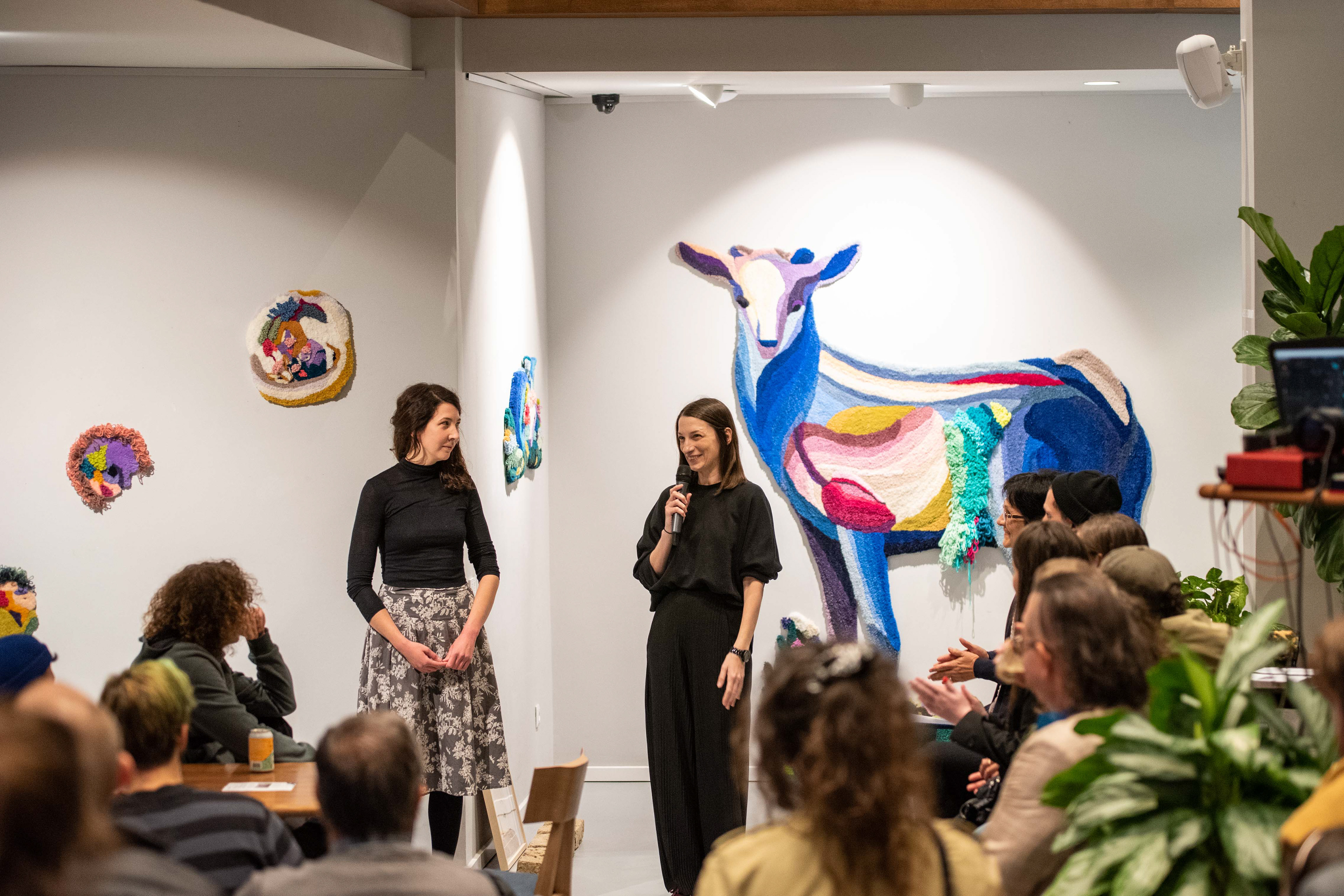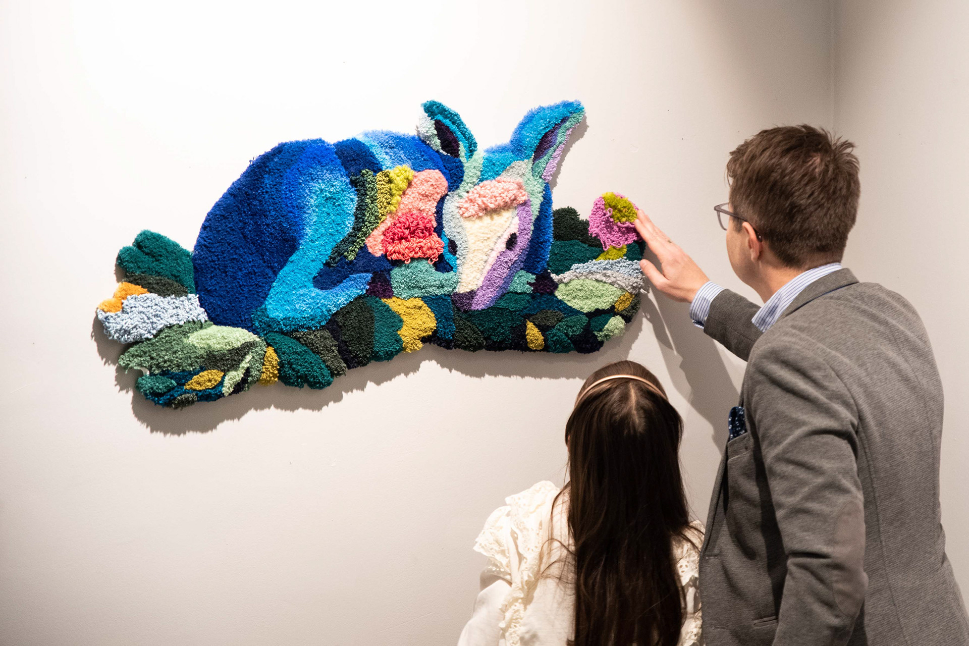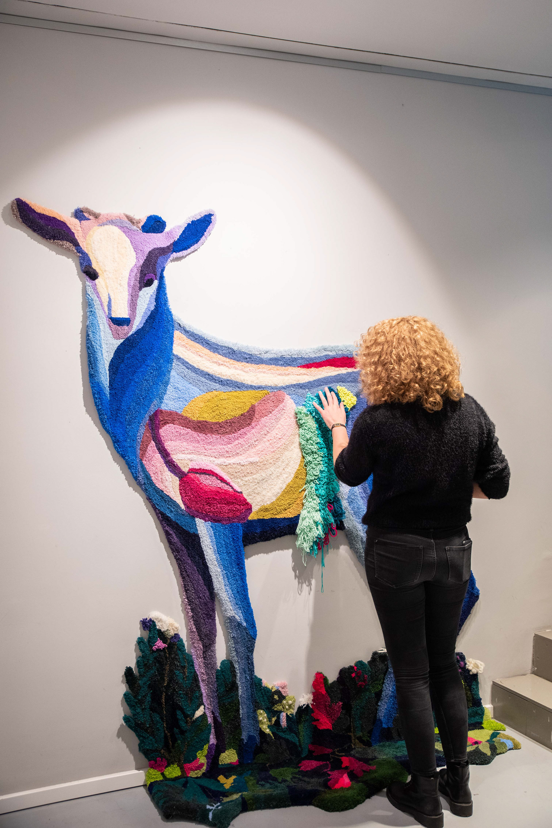 The exhibition critically examines the phenomenon of urban wildlife with a sensitizing purpose. Réka Vidra brings the topic closer to us, city dwellers, with an unusual and very smart choice of materials and techniques. The animals depicted by the artist surround the visitor in the form of soft, hand-tufted rugs that are familiar from interiors and give warmth. Thanks to this, the exhibition presents the overwhelming and multifaceted problem of the urbanization of wildlife in an inclusive and soothing environment that enables genuine understanding, reflection and the opportunity to search for possible solutions."